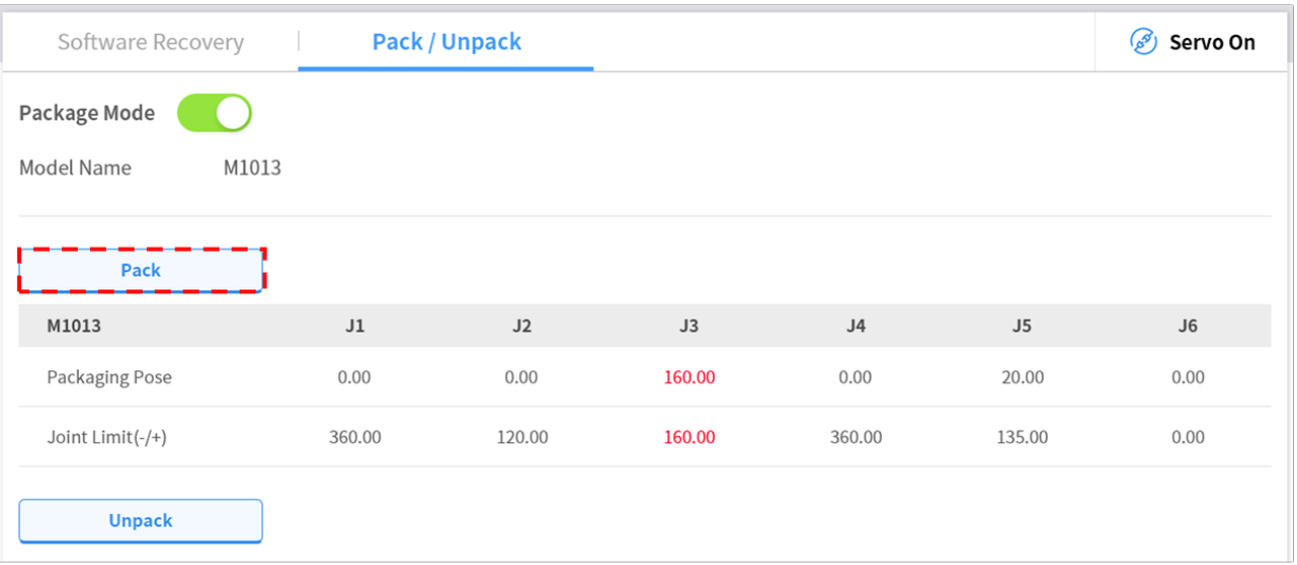 - Robot automatycznie ustawi się w ustalonej pozycji pakowania.