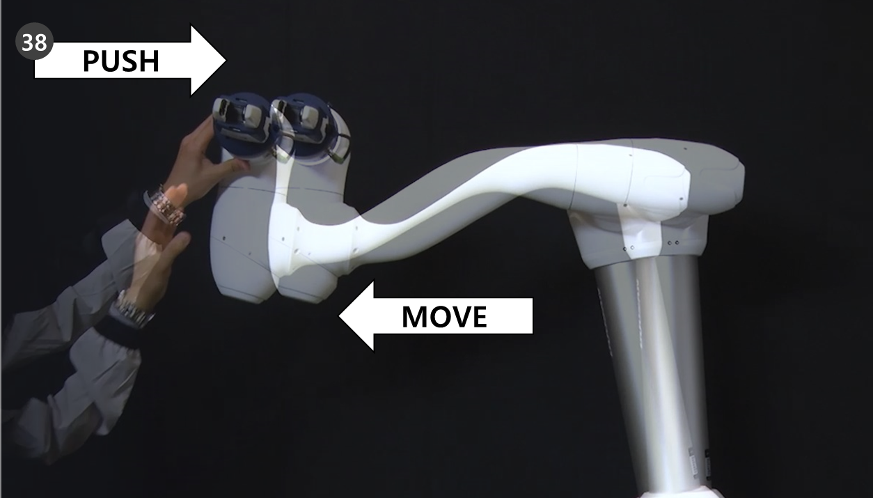 Przytrzymać koniec robota i powoli popchnąć go w kierunku korpusu robota. Robot porusza się z powodu siły pchającej i powraca do pierwotnej pozycji.
