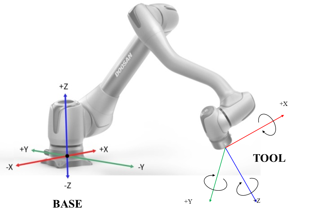 - Wybierz współrzędne bazy. Robot może być przesuwany zgodnie ze współrzędnymi BAZY lub WSPÓŁRZĘDNYMI NARZĘDZIA.