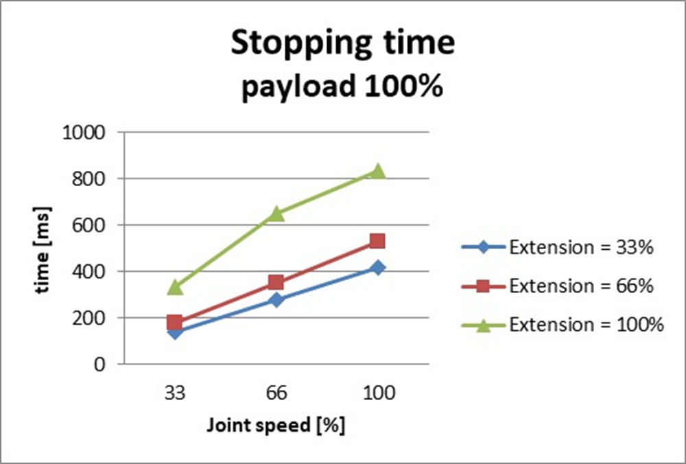 Distância de paragem e tempo de paragem da articulação 2 (ressalto)