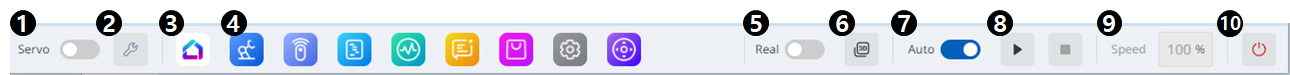 | 4 | Interrutor automático | Este botão altera o estado do robot para Auto ou Manual. O valor alterado pode ser visto no canto superior esquerdo da tela.