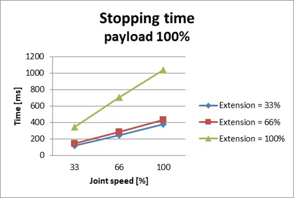 Distância de paragem e tempo de paragem da articulação 2 (ressalto)