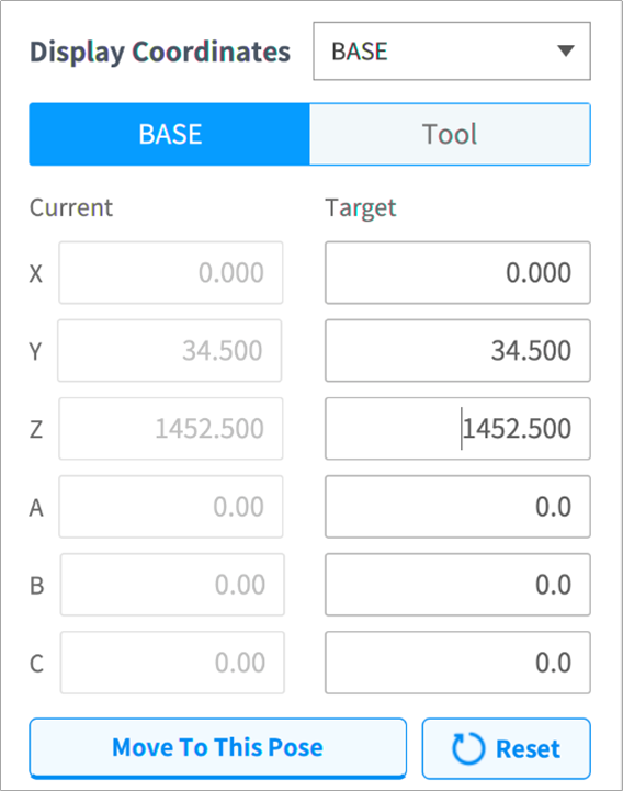 Para mover o robô em relação às coordenadas da base do robô:
