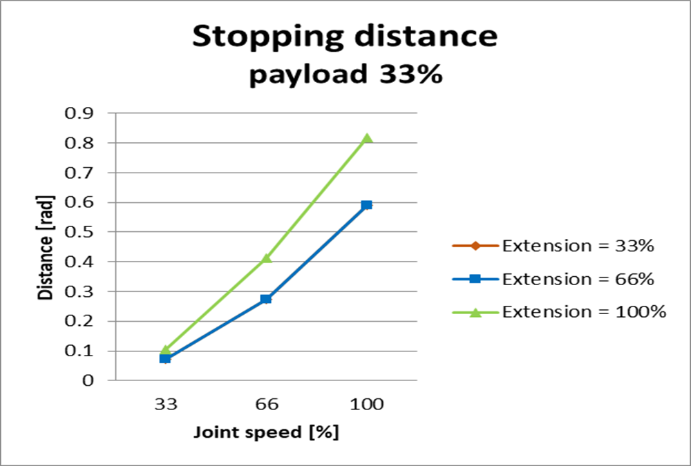 Distância de paragem e tempo de paragem da articulação 2 (ressalto)