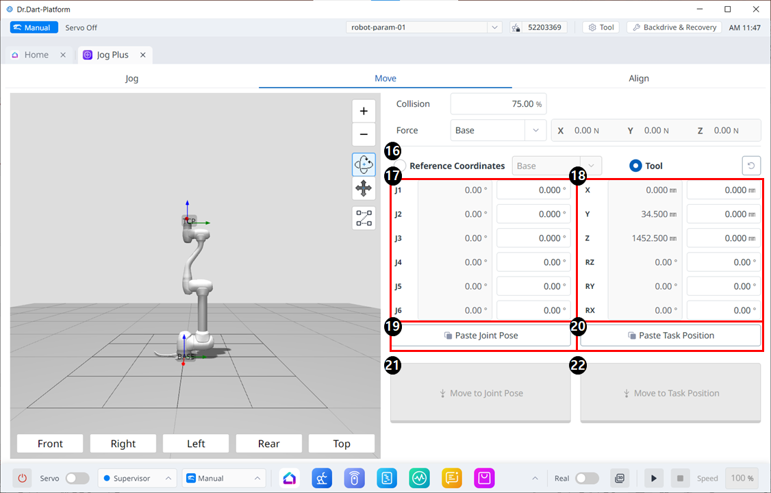 | 21 | Joint Move button | 该按钮使机器人移动到目标关节姿势。 |