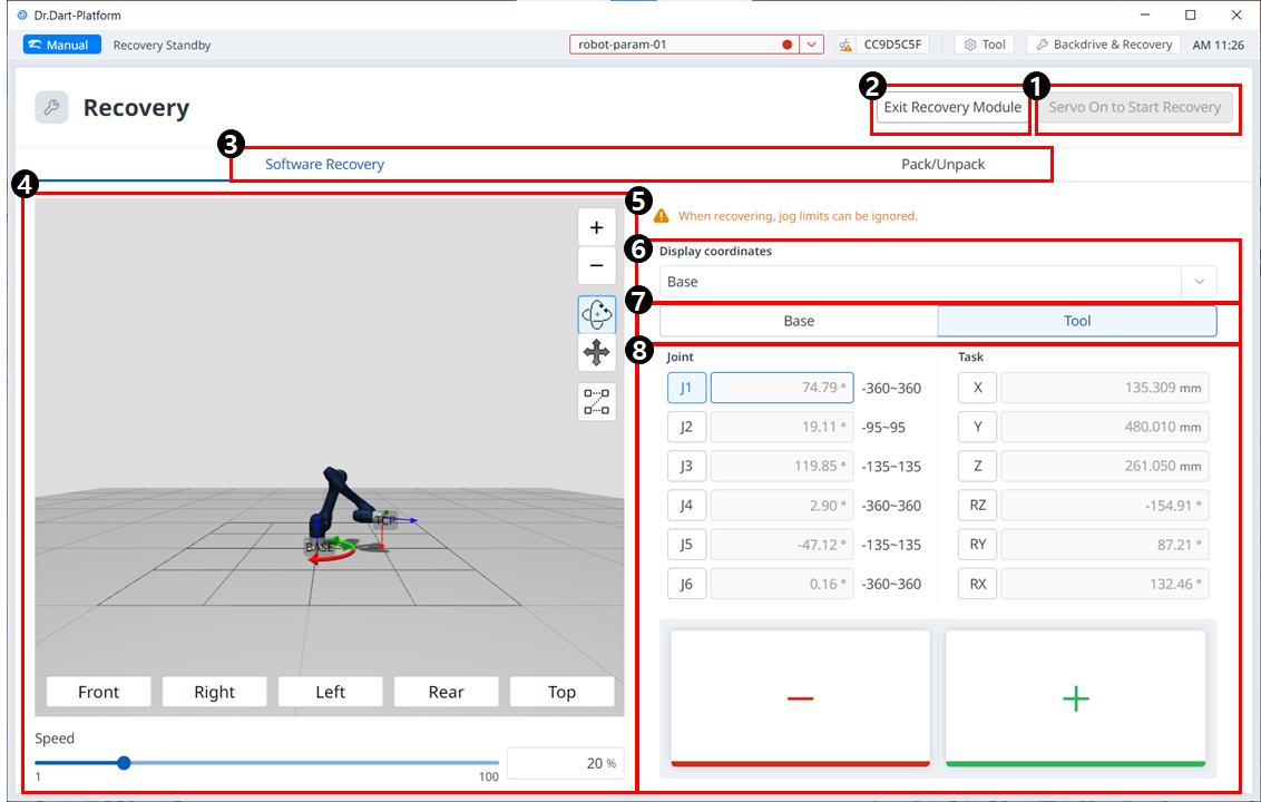 | 8. | 联合/任务 | 此部分允许您输入移动机械手所需的值。 |