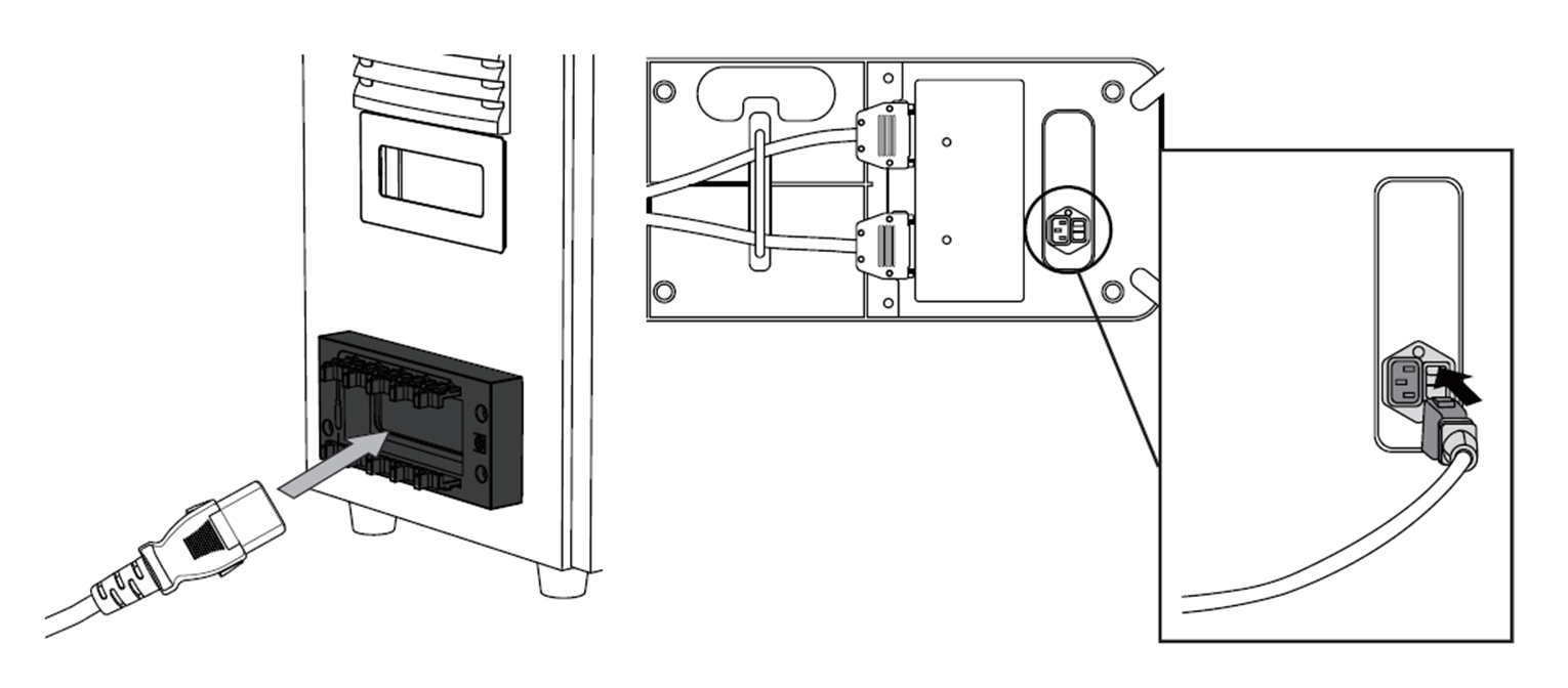 将电源电缆推入相应的控制器连接器,直到听到喀哒声为止,以防止电缆松动。