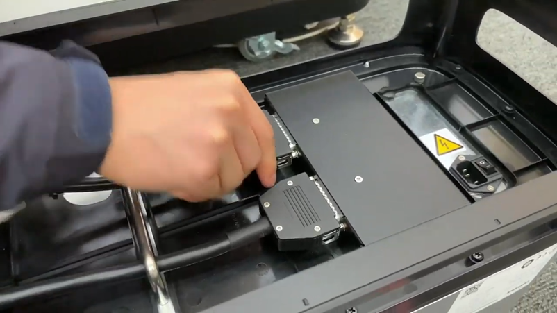 - 将机械手电缆的另一端推入相应的控制器连接器,直至听到咔嗒声,以防止电缆松动。
