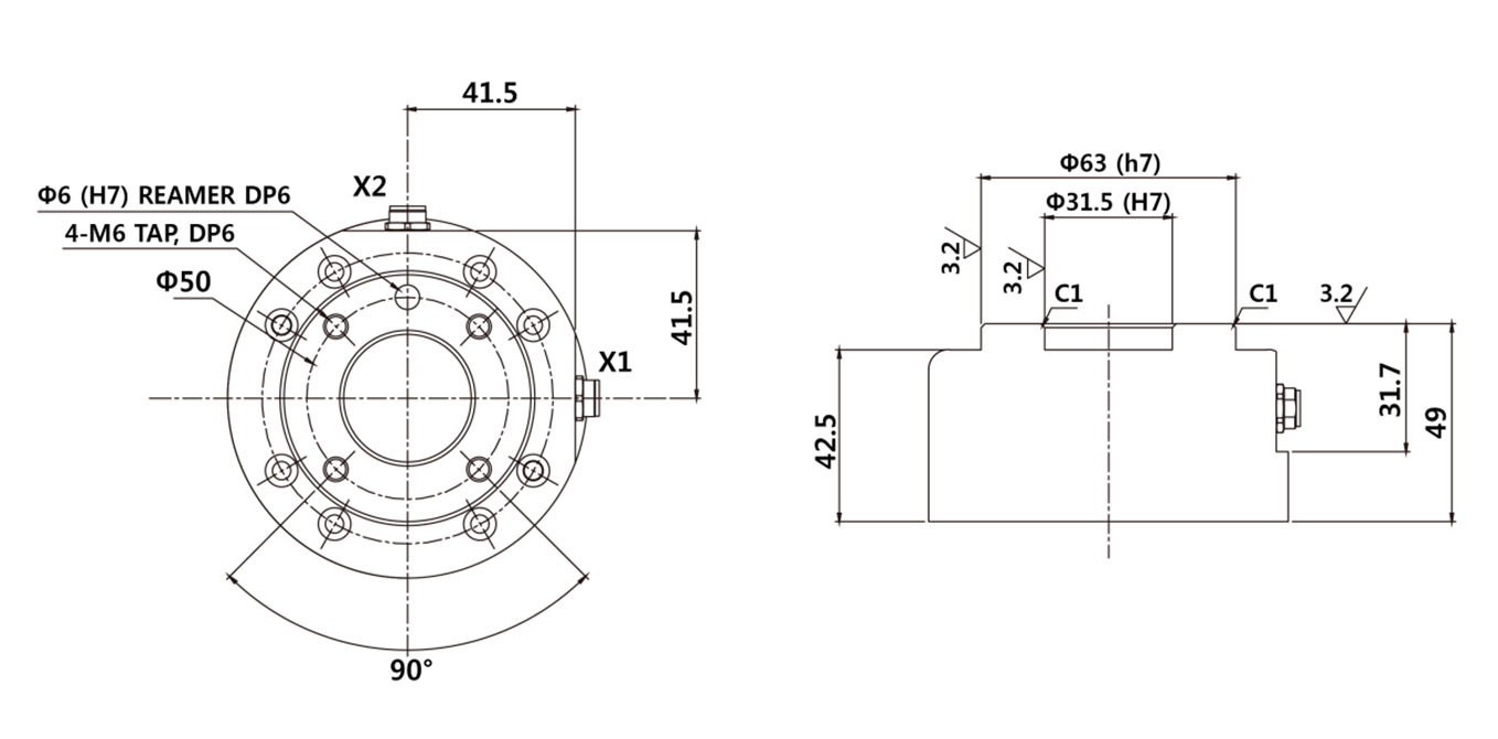 使用 Φ6 定位销将机器人准确地安装在固定位置。
