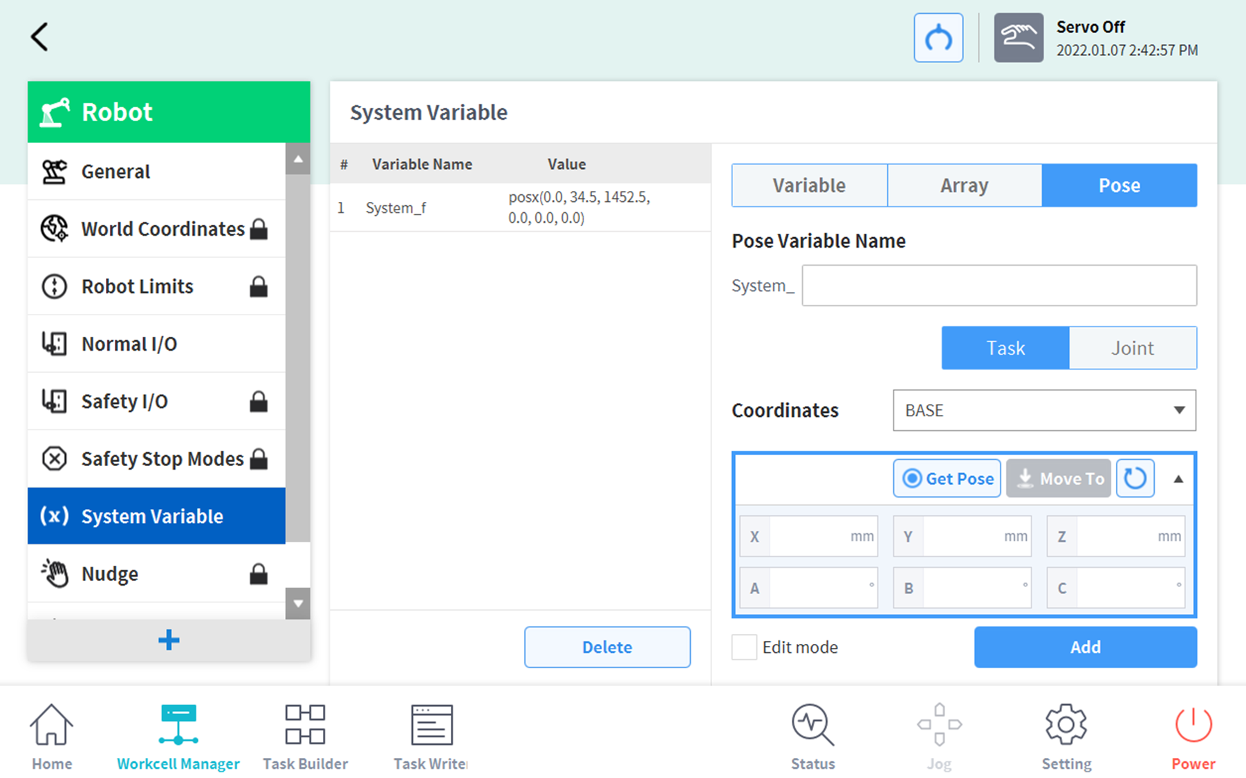• 除 Workcell Manager 外,还可以从“任务生成器”和“任务编写器”屏幕编辑系统变量。